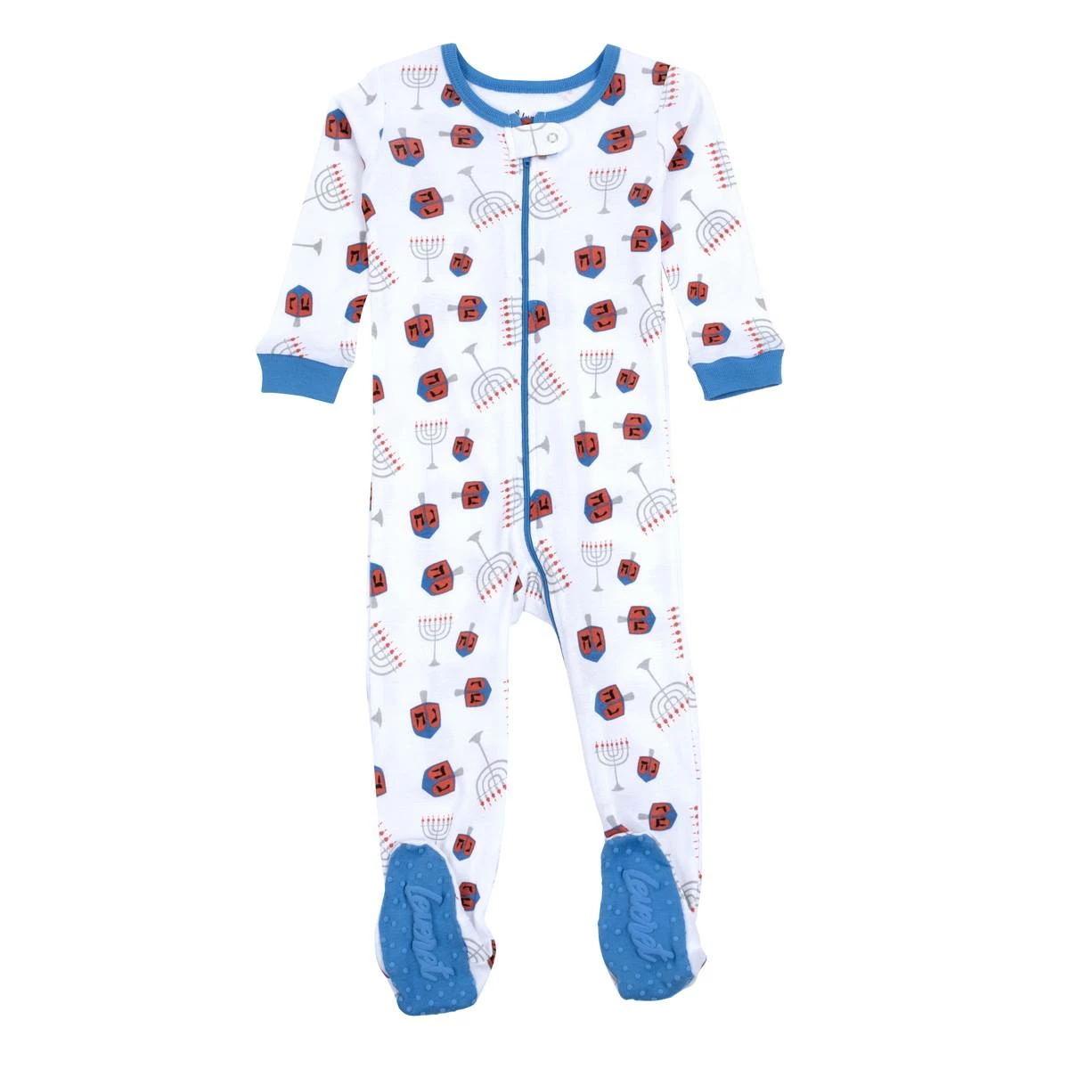 Your kid will love this Baby Leveret Menorah print footie pajamas! Restock your little one’s bedtime wardrobe with these soft footie pajamas featuring a playful print and breathable cotton design for snuggle-worthy comfort.