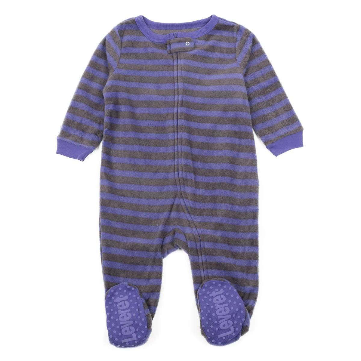 You’ll love this cute and comfy long sleeve Baby Unisex Leveret purple stripe footie fleece pajamas! These pajamas are made to be fitted. Keep your little ones warm in this full zippered footed sleeper.