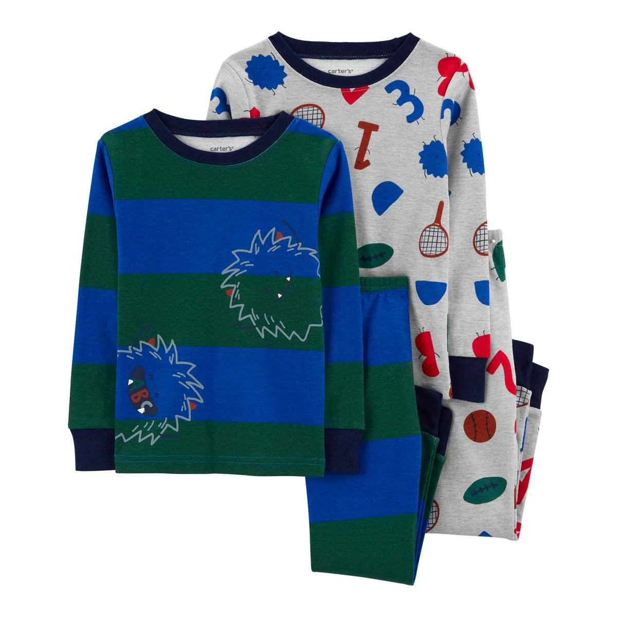 Give your little cuddle monster two fun and comfy options for bedtime with this Baby Boy (12-24M) Carter’s® 4-piece long-sleeve alphabet monster cotton pajama set.