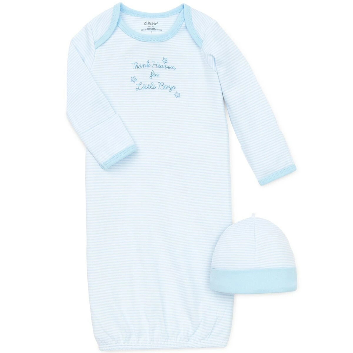 Keep your little one warm and cozy with this Baby Boy (NB-3M) Little Me thank heaven sleeper gown and hat set.