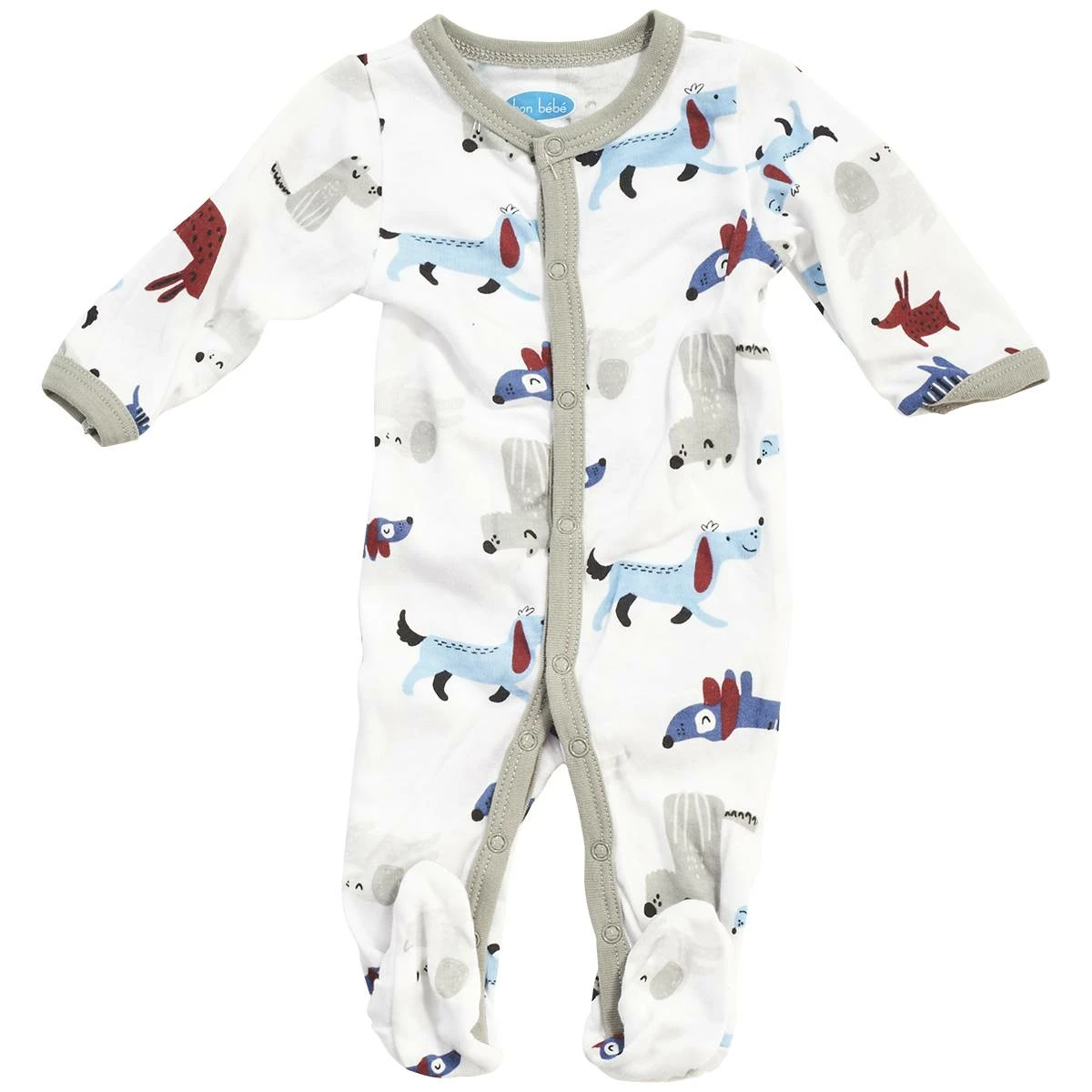 He will enjoy sleep or playtime when he wears this adorable Baby Boy (NB-9M) bon bébé puppies sleeper. The sleeper features long sleeves, full snap closure, built-in footies, contrasting grey trim, and a novelty puppy print.