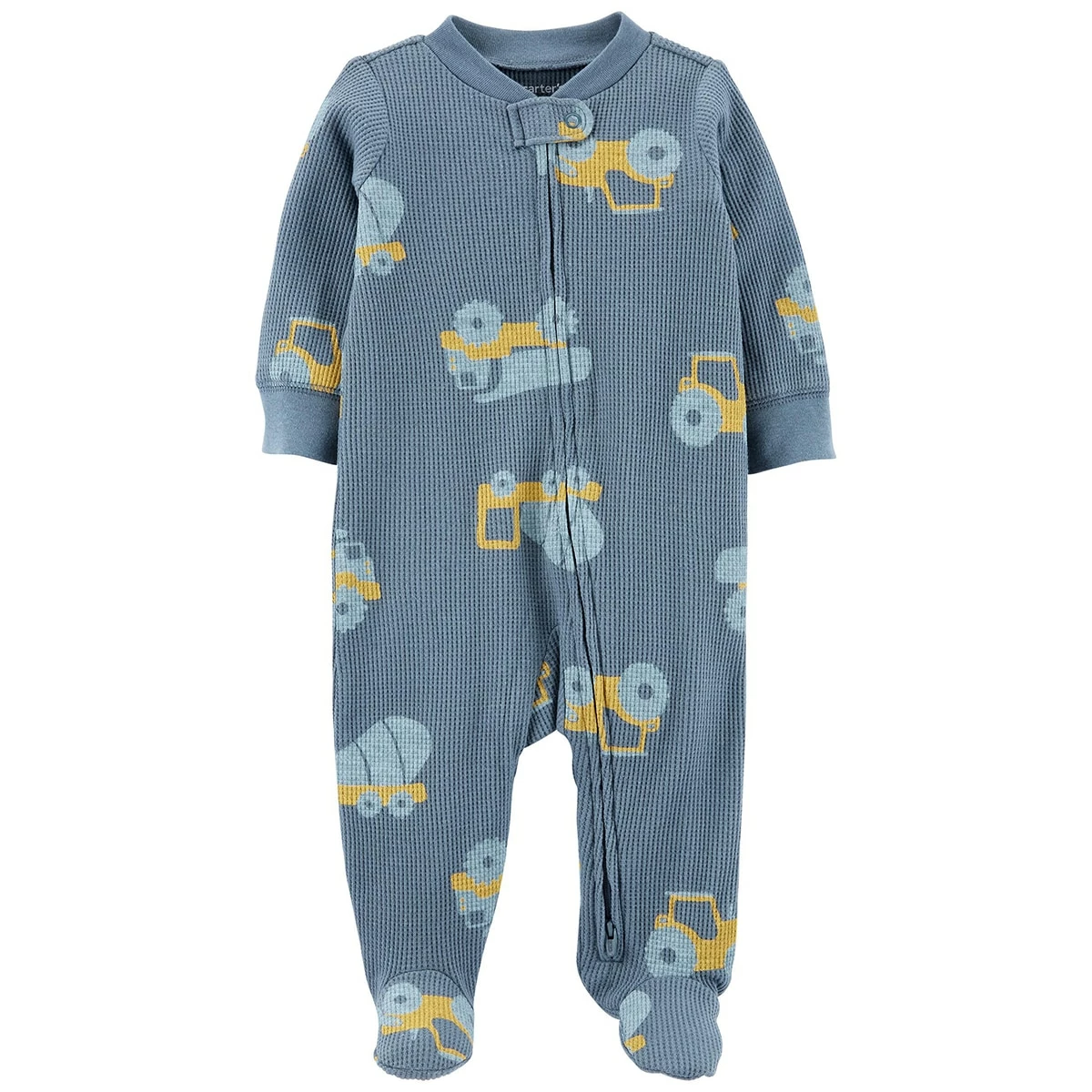 He’s going to build and play in this cute Baby Boy (NB-9M) Carter’s® construction thermal sleep N play. The sleeper features long sleeves, full zip closure with a cuddle tab to protect the baby’s chin, built-in footies, and a truck print.