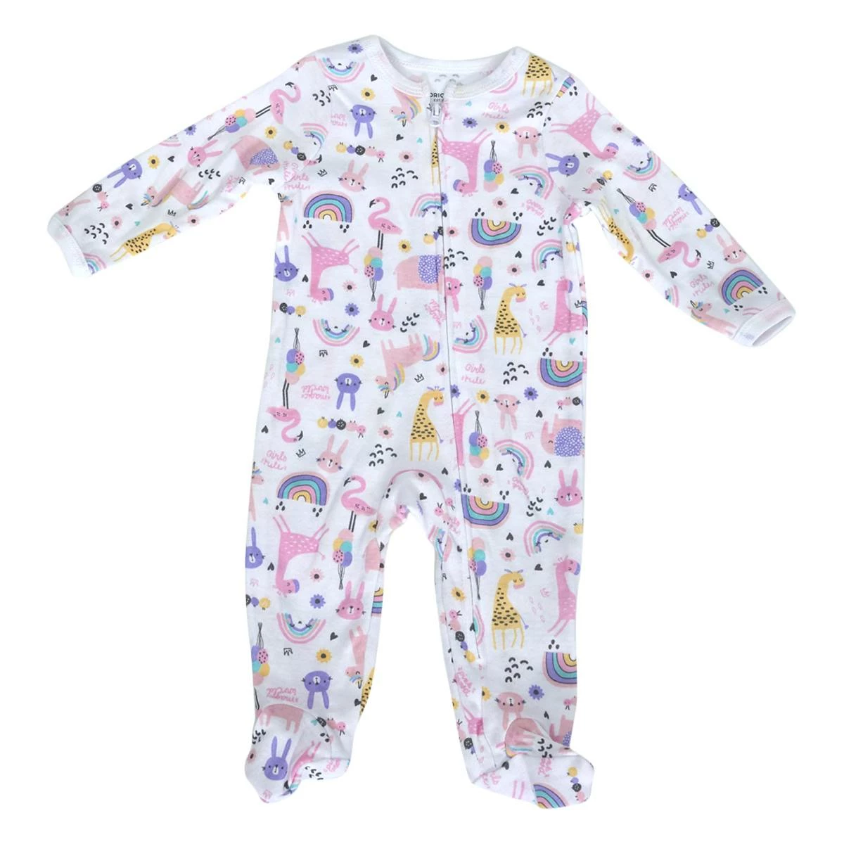 Your little one will be comfy all night in this Baby Girl (NB-9M) Emporio Baby rainbow animal footie sleeper. The sleeper features long sleeves, a full zip closure, built-in footies, and a novelty print.