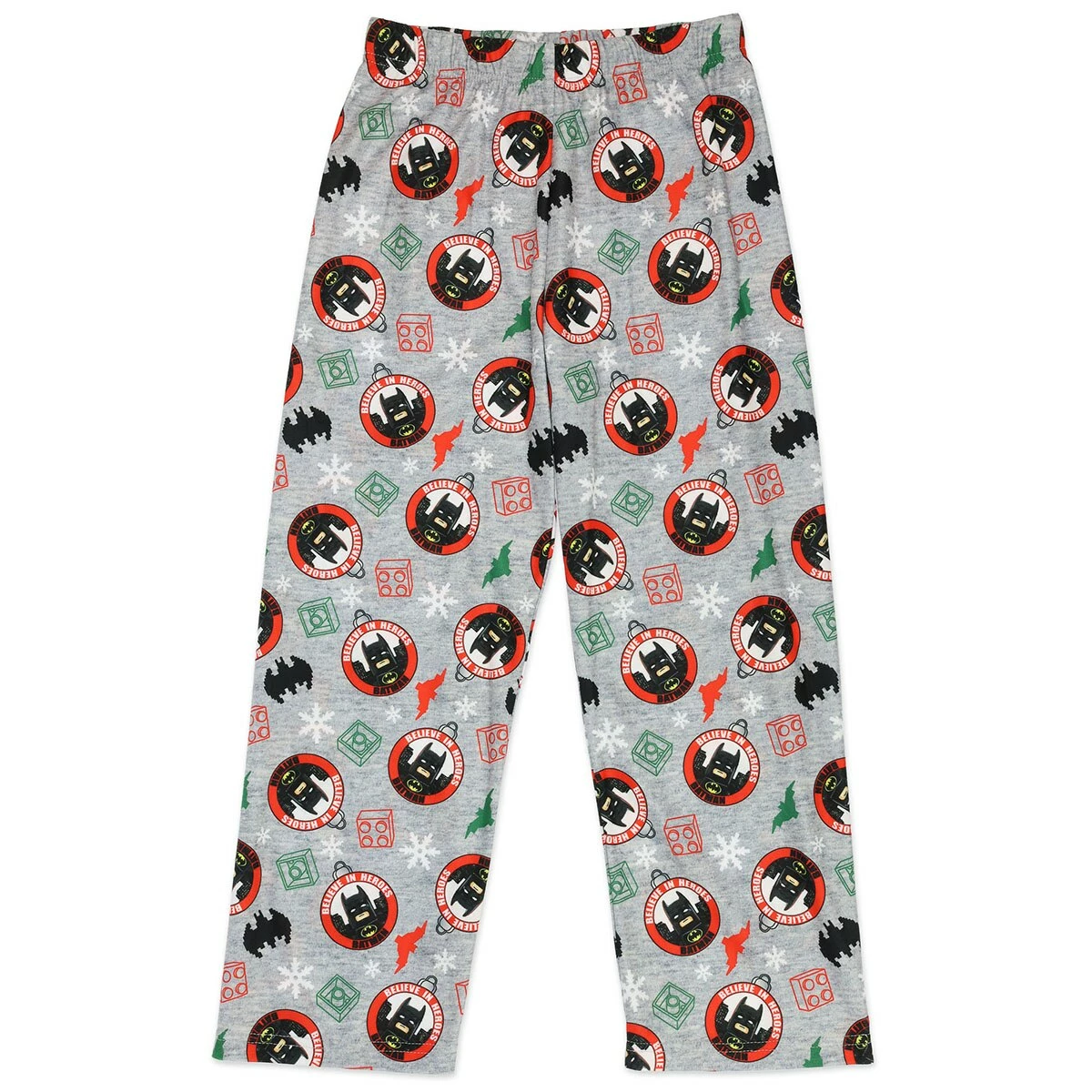- Pants: elastic waist, snowflake & lego pattern, “Believe in Heroes” text on batman ornament pattern, Batman™ graphic