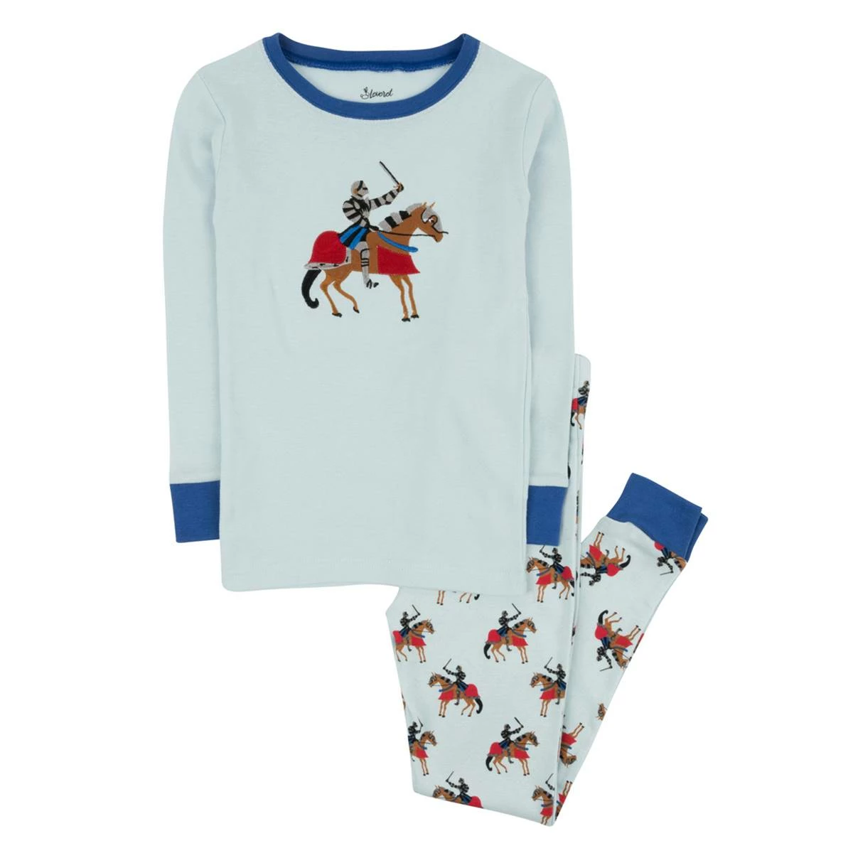 Dress your little one in this Boys Leveret knights pajama set for a comfortable night’s sleep, featuring a snug fit top and knight printed bottoms.