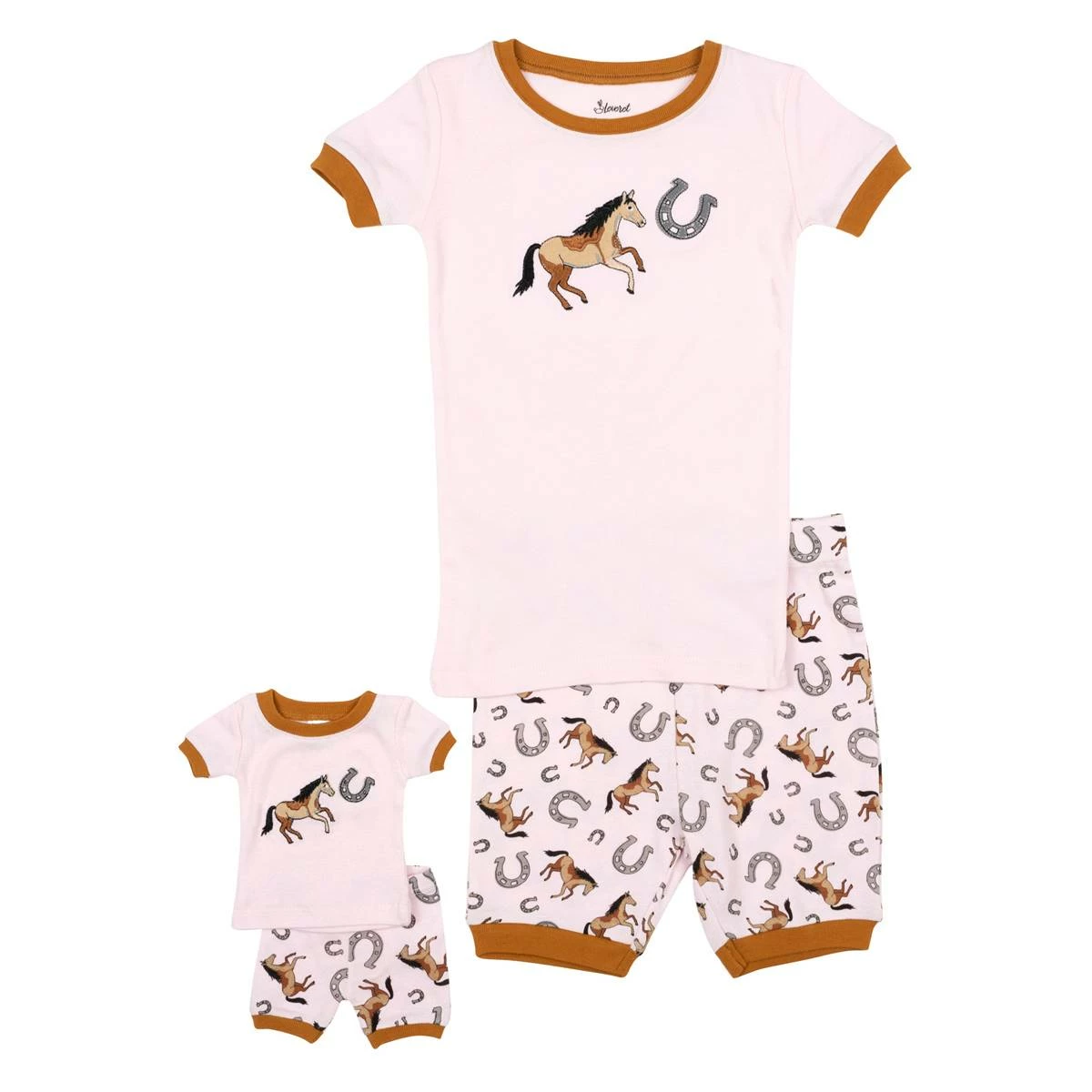 Your daughter will love matching her doll in this Girls Leveret pajama set. Featuring a horse with horseshoe print on both your daughter’s pajamas and the matching doll pajamas.