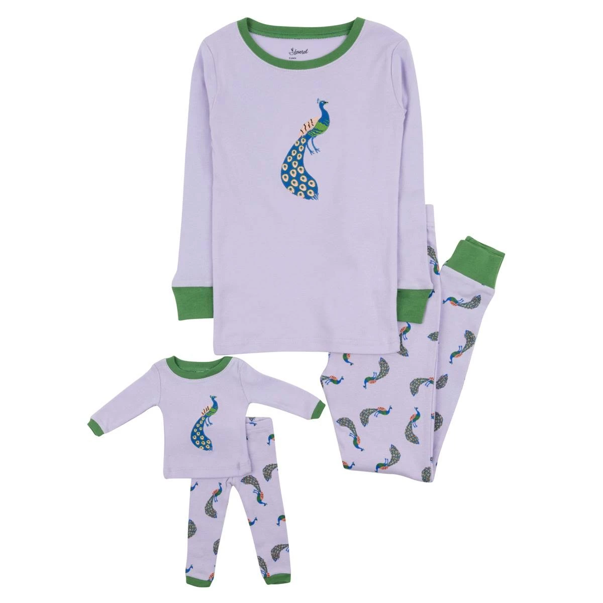 Your daughter will love matching her doll in this Girls Leveret pajama set. Featuring a peacock print on both your daughter’s pajamas and the matching doll pajamas.