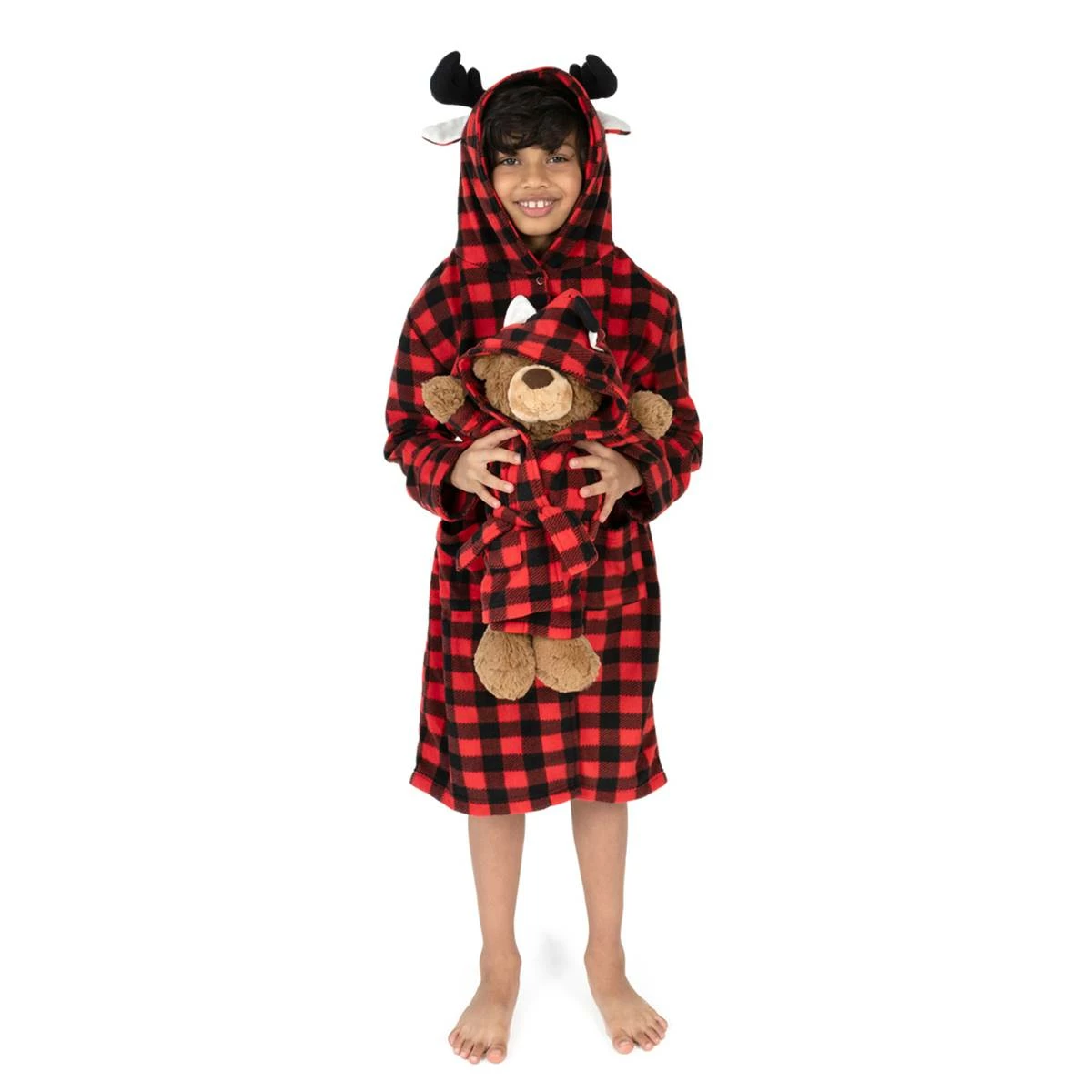 Your kids will love this Kids Leveret fleece robe. Featuring a tie waist, hood, and two convenient pockets made of a micro-fleece that is naturally flame resistant. The best part is there is a robe included for your child’s doll or stuffed animal.