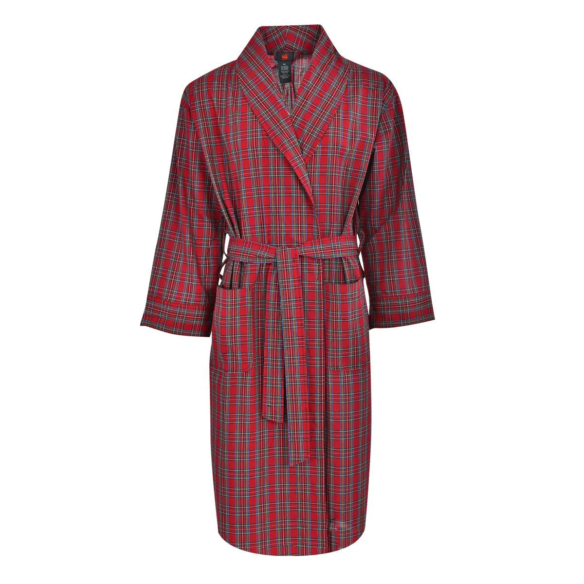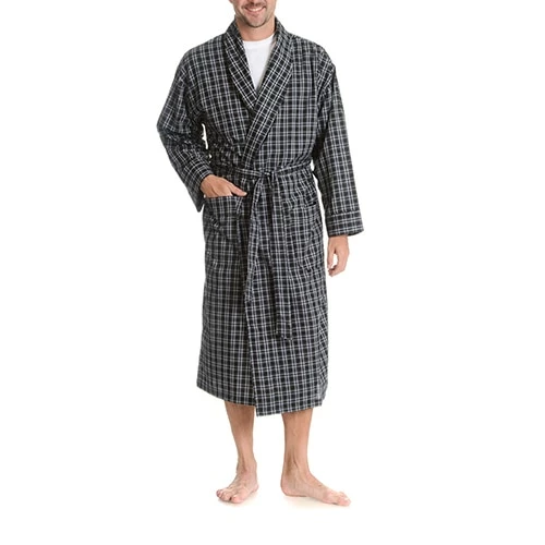 Lightweight and comfortable, this men’s Hanes® Ultimate® Plaid woven robe is a true nighttime necessity. Comfortable and convenient with a tie front closure and two front pockets.