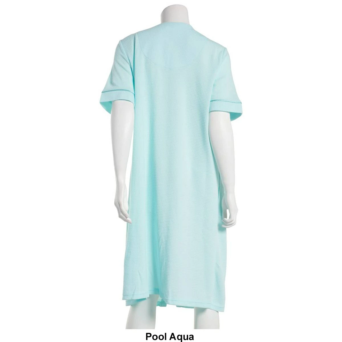 Layer on the warmth with the Petite Jasmine Rose short sleeve blister knit Trapunto zip robe. Featuring a zip closure, floral embroidery, and two exterior pockets.