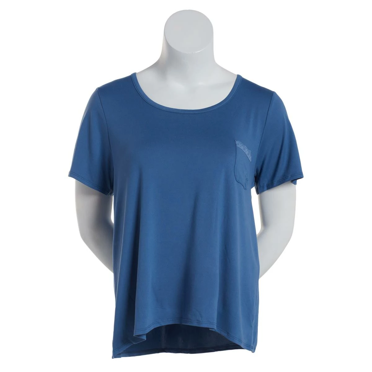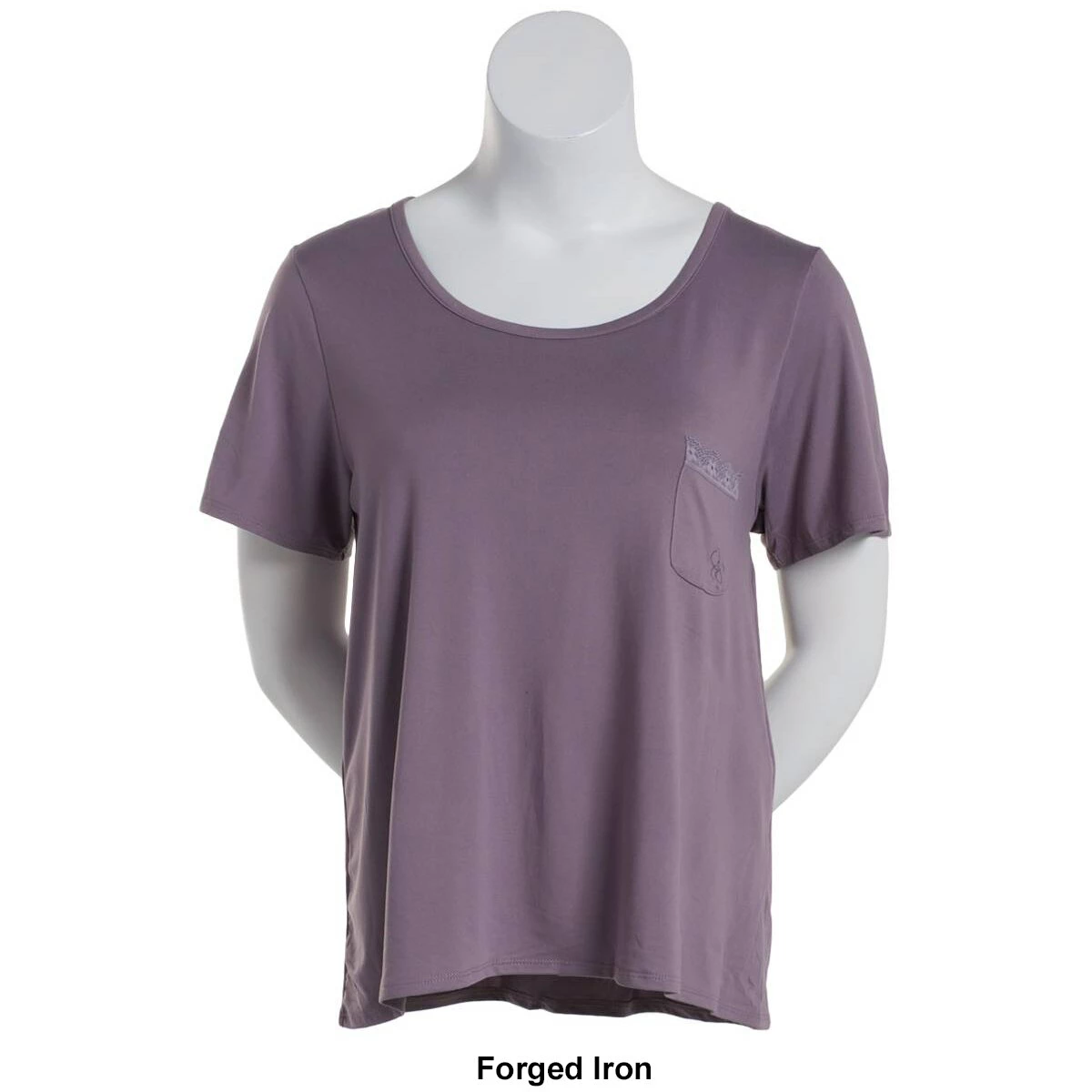Pair this Plus Size Jessica Simpson short sleeve round neck pajama tee with a pocket with any of your favorite lounge pants. Relax in this very soft top.