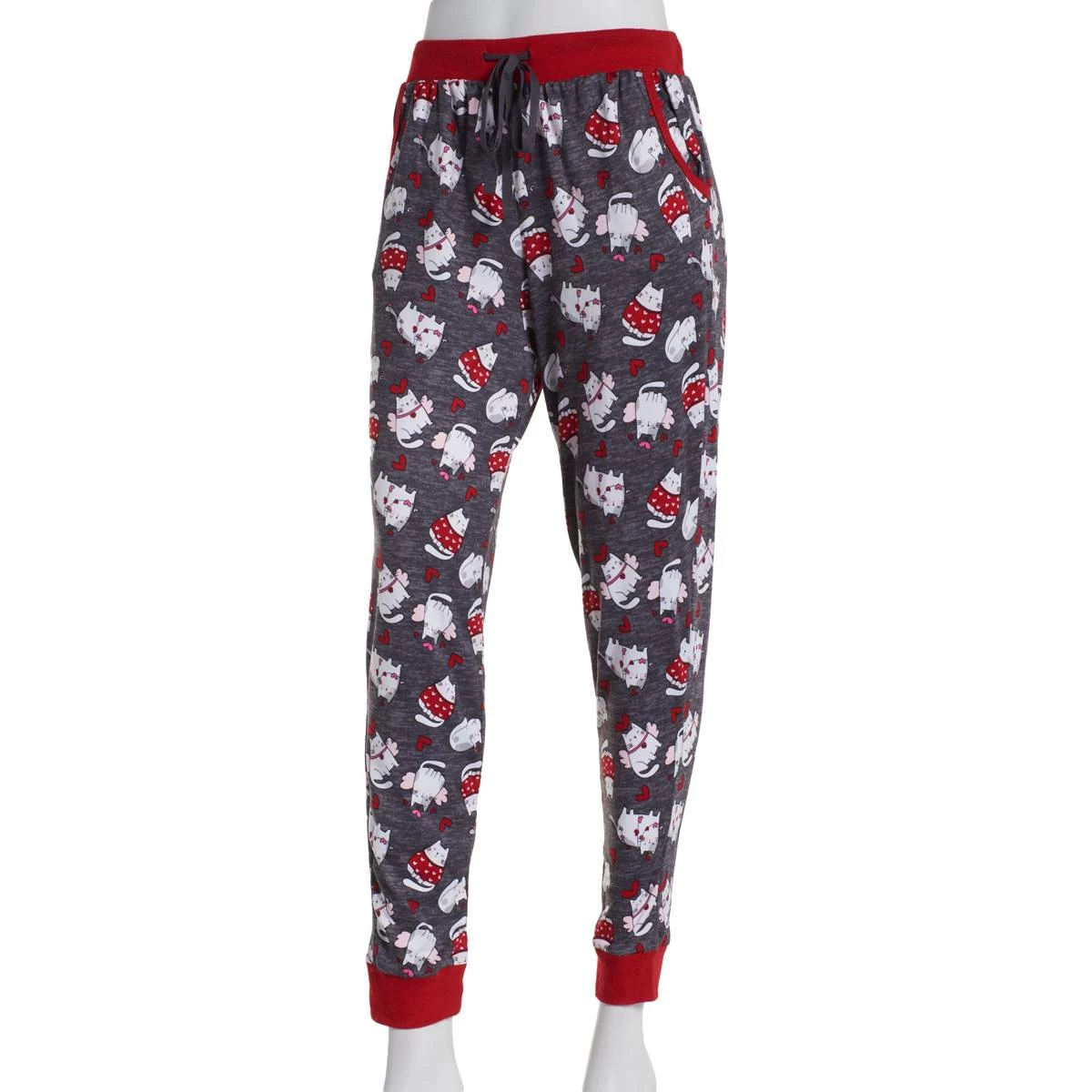 The Womens Pillow Talk cat comfy cozy brushed sueded pajama pants feature a cat design throughout. Also featuring an adjustable self tie around the waist and exterior pockets.