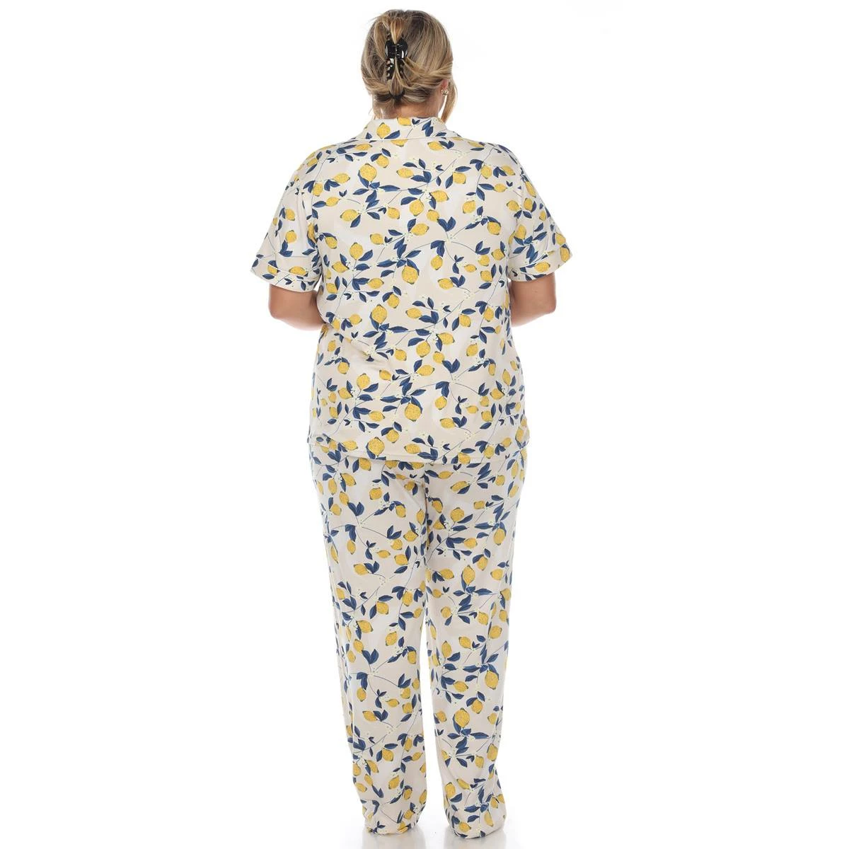 This Plus Size White Mark Lemon Print Pajama Set is so comfy you won’t just wear them to bed, it is also perfect for lounging around the house. The set includes a button-down shirt and elastic stretch waistband pants for ultimate comfort.