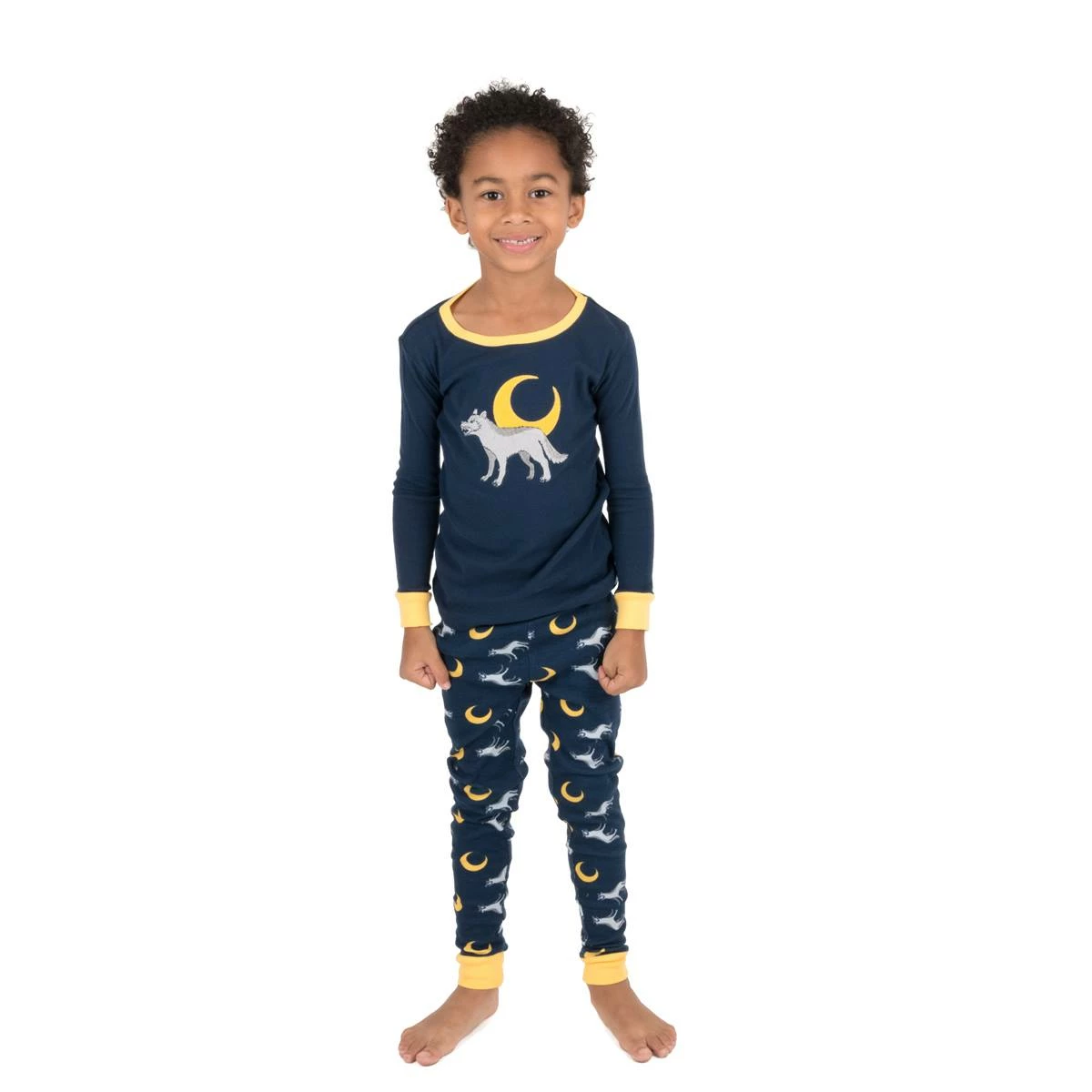 He’ll be looking cute and feeling comfy in this Toddler Boy Leveret cotton howling wolf pajama set! Both the top and bottoms are made of soft cotton; perfect for the cold weather.
