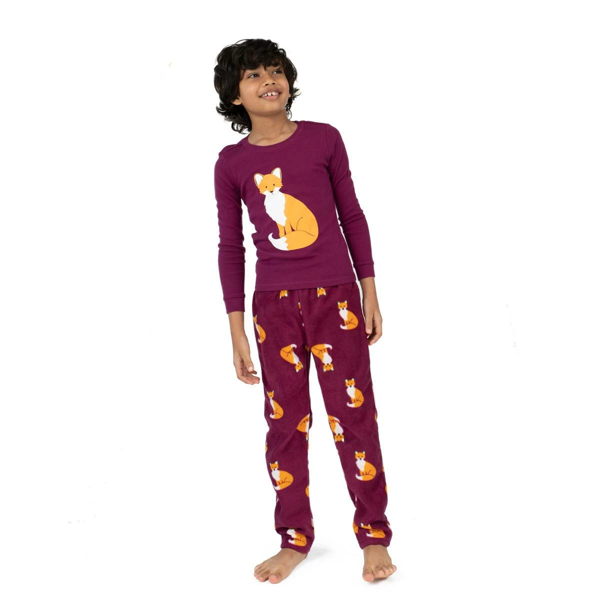 Dress your kids in this Toddler Boy Leveret pajama set for a comfortable night’s sleep. With a snug fit top and fox printed fleece bottoms, both pieces are flame resistant.