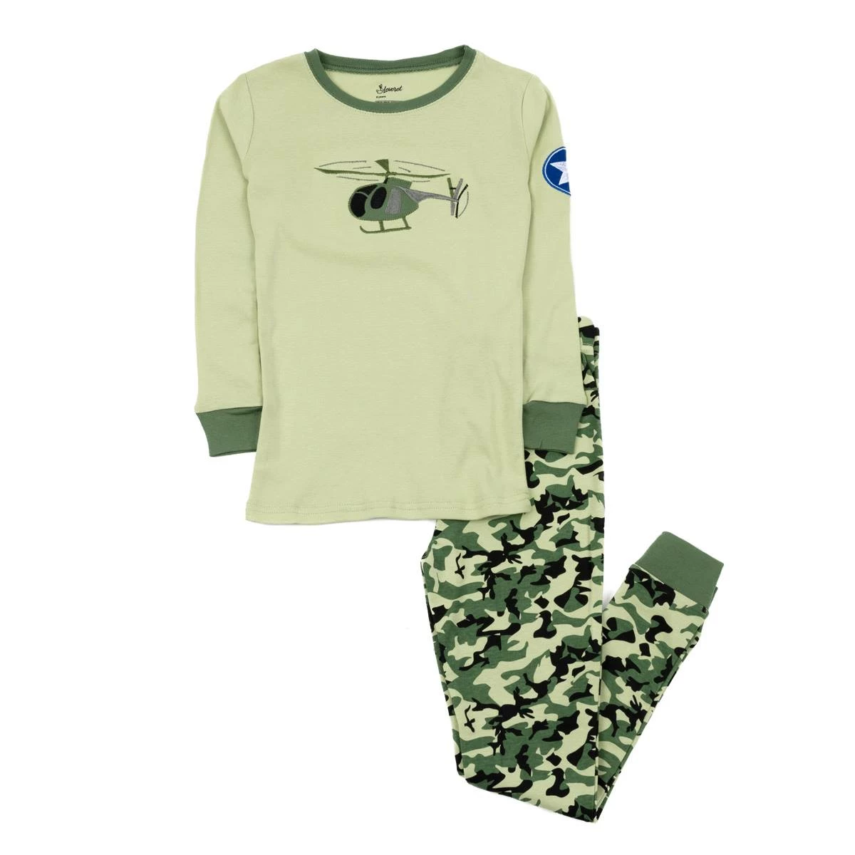 Your child will love these cute and comfy Toddler Unisex Leveret cotton helicopter camo pajama set! Both top and bottoms are made of soft cotton; perfect for the cold weather.