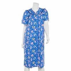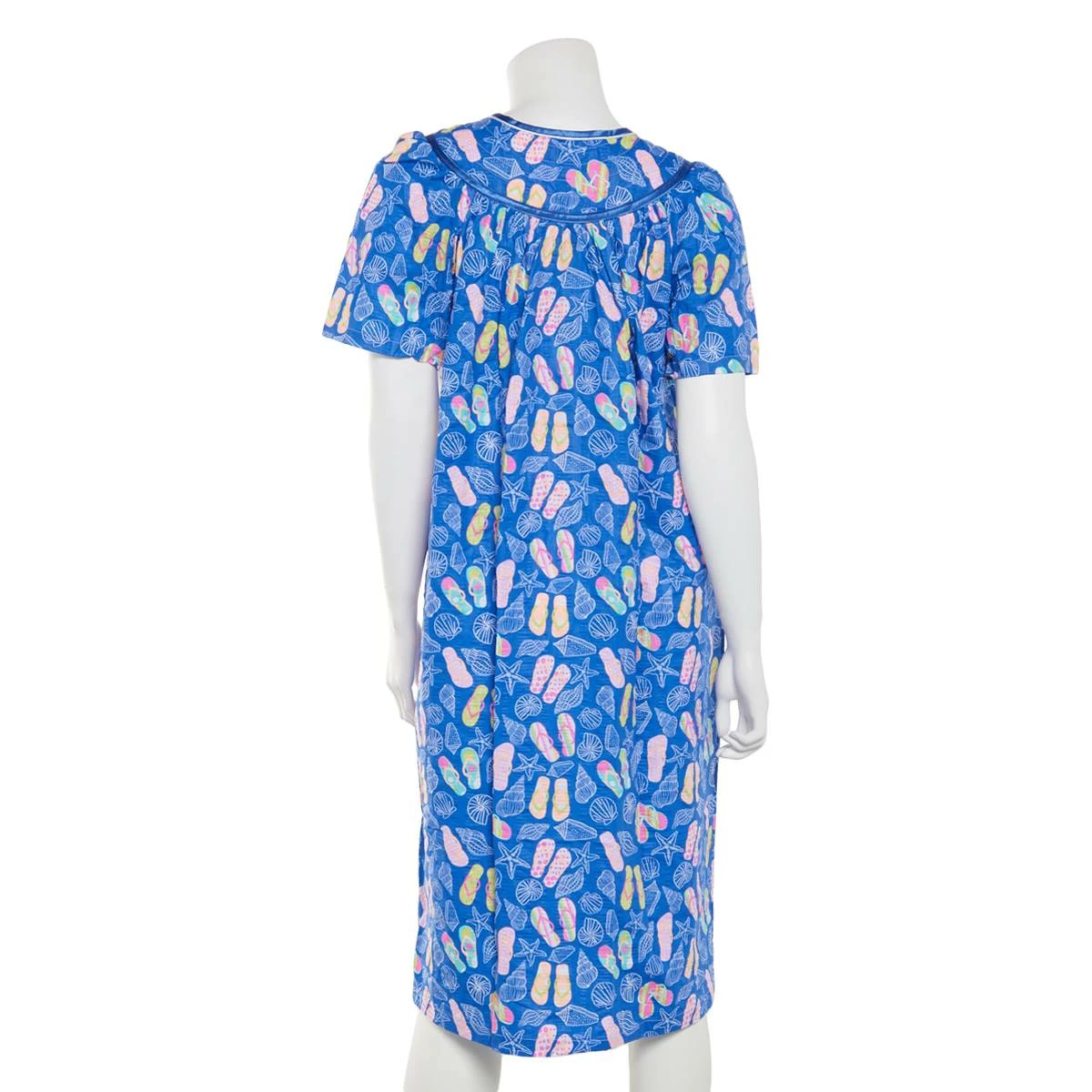 Add this Womens Elegant Emily short sleeve summer trapunto plisse duster to your sleepwear. The fabulous day and night style features pockets and a button front.