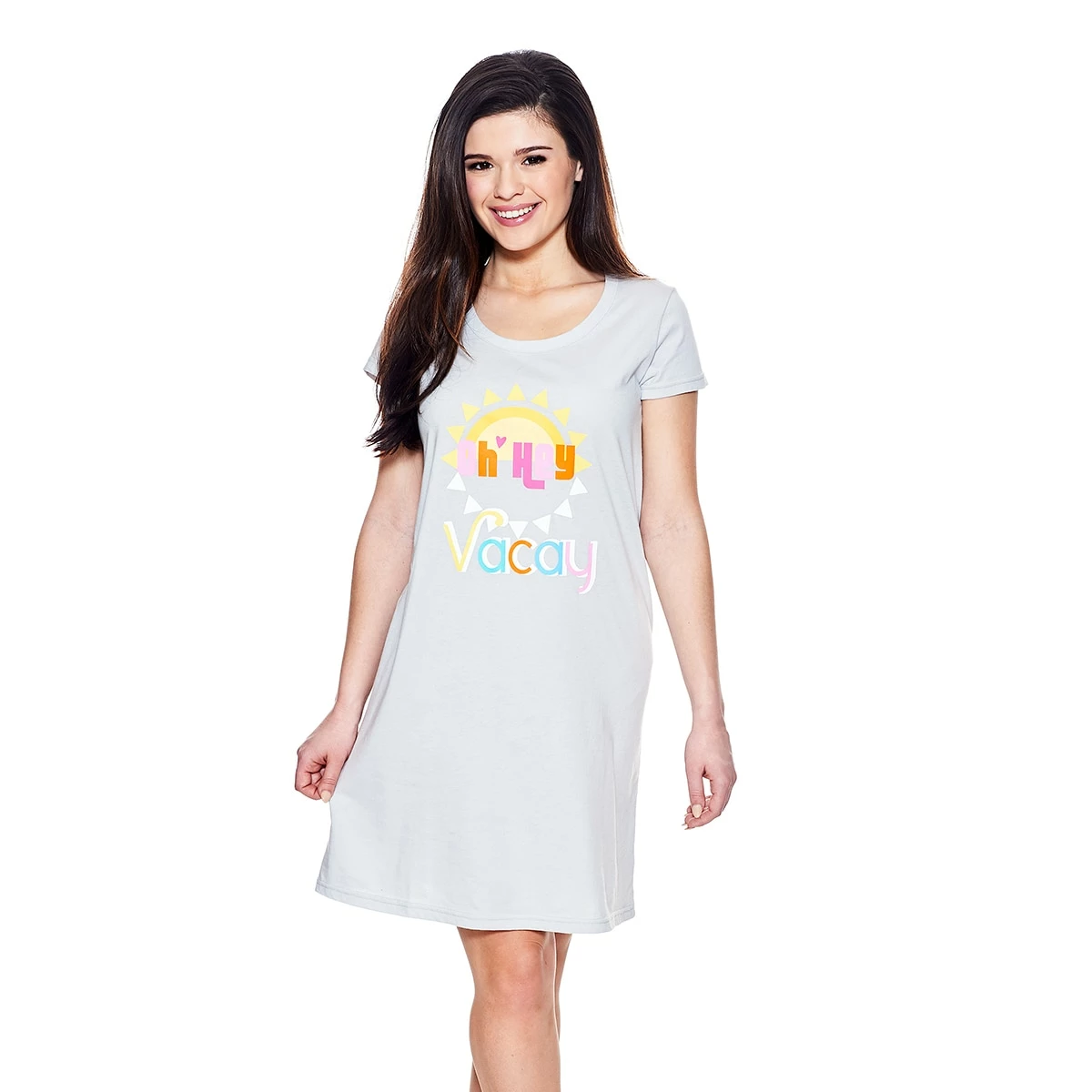 Drift into a dream with this cute Womens Goodnight Kiss “Oh Hey Vacay” screen print nightshirt. Featuring a round neckline design with short sleeves, this soft and cozy tee is perfect for all-night comfort.