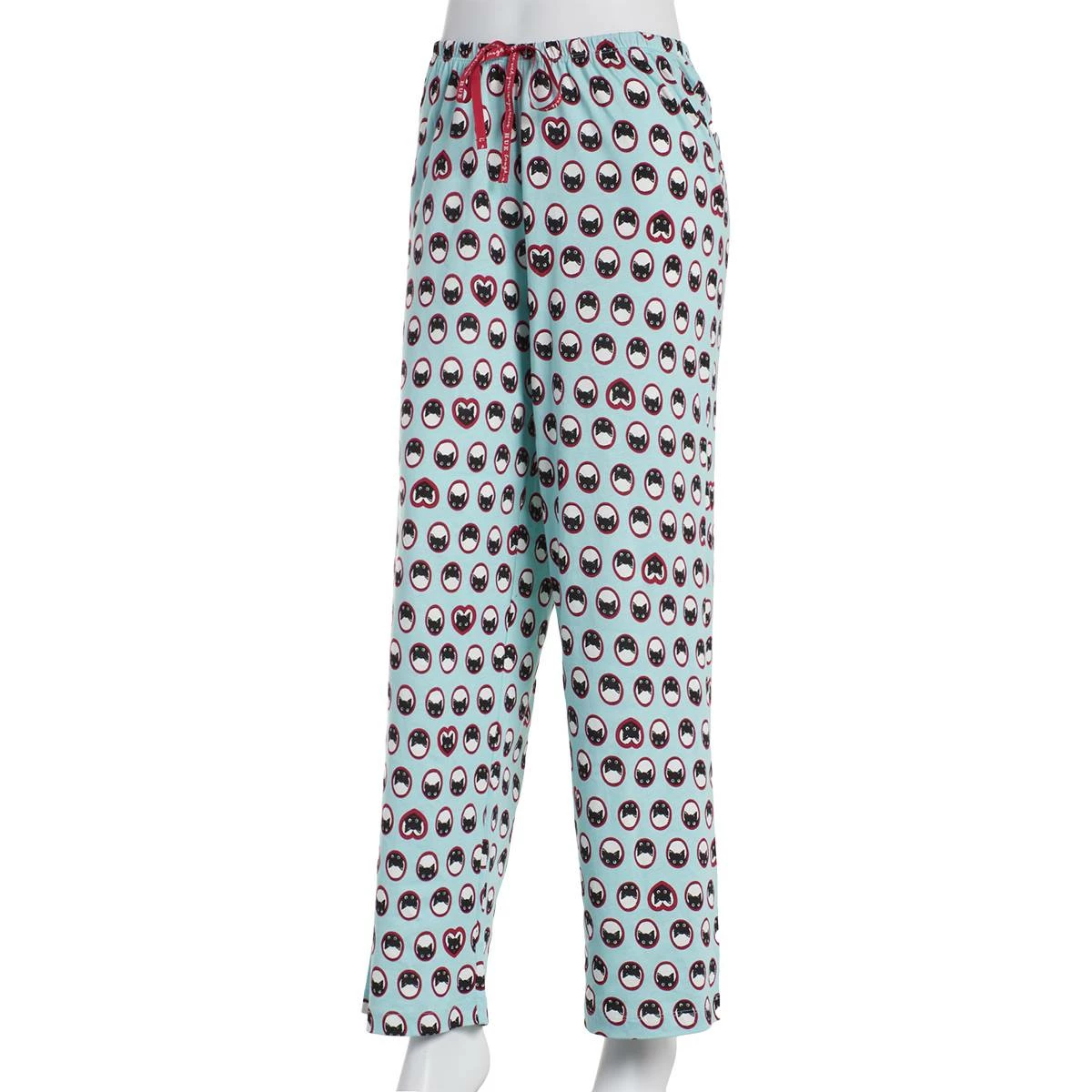 These fun Womens HUE® knit classic pajama pants feature a cat design throughout and tie front closure. Made of soft material, these bottoms will keep you feeling cozy all day long.