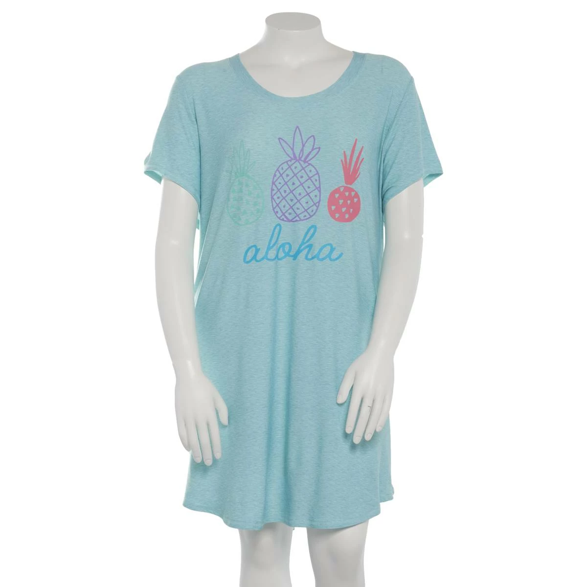 Jump into this Womens Jaclyn short sleeve nightshirt! This is made from super soft material and features “Aloha” and pineapples screen printed on the front.