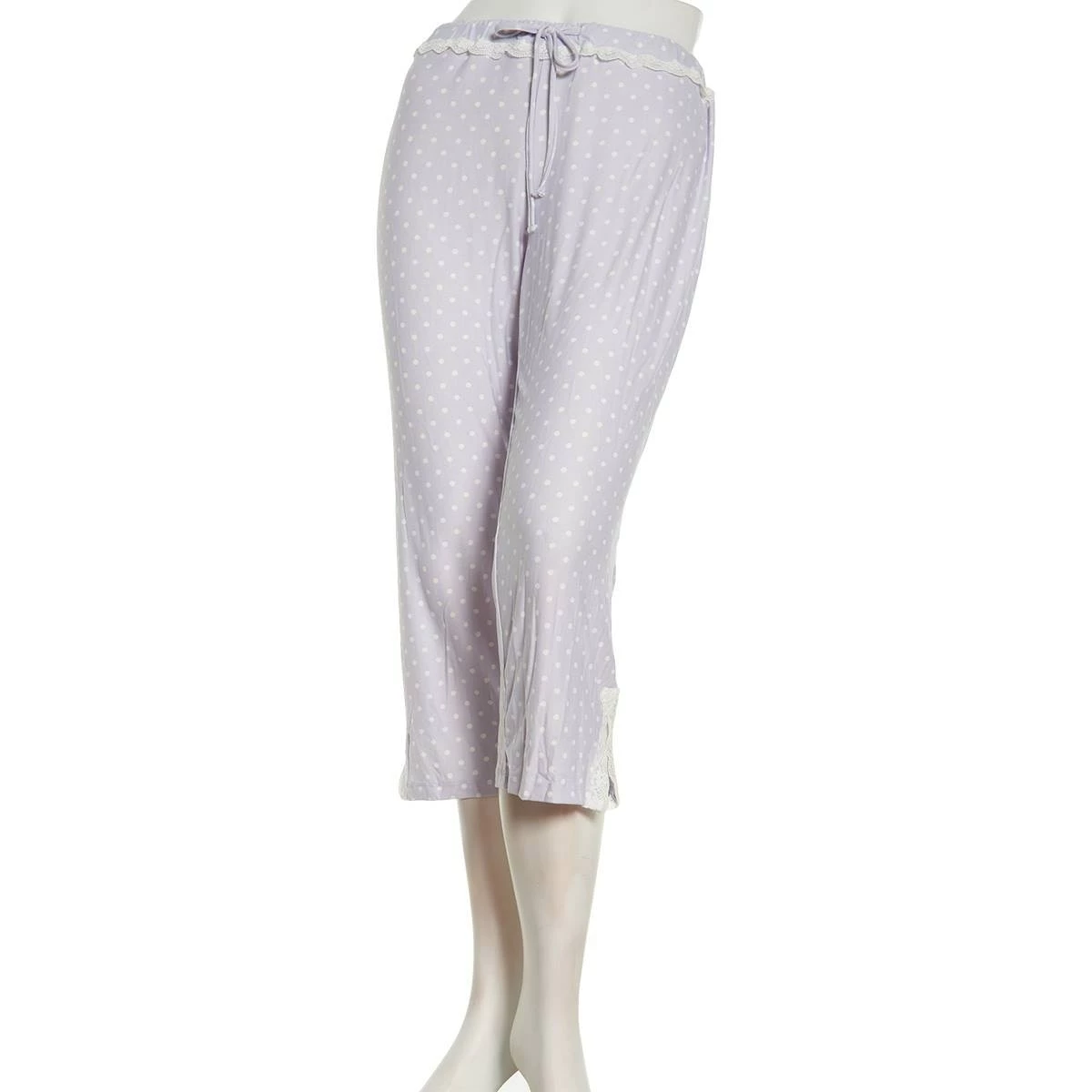 Relax in the Womens Jessica Simpson poly spandex capri pajama pants. Featuring a pretty dot design throughout, a self-tie closure, and a split hemline.