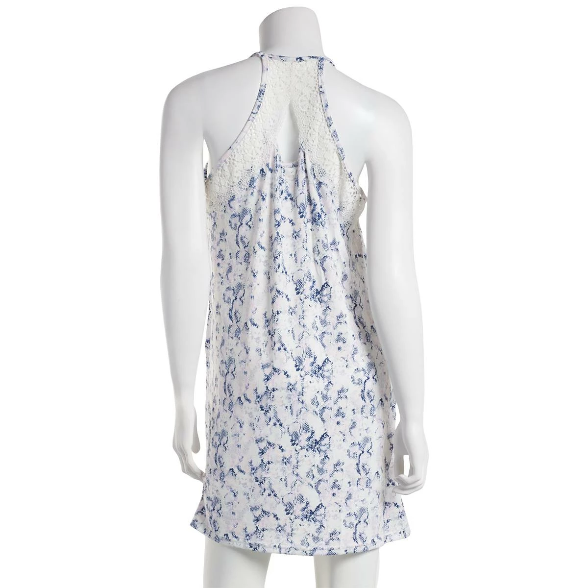Kick your feet up and relax in the Womens Jessica Simpson racerback nightshirt. Featuring a pretty snakeskin design, lace detailing, and adjustable straps.