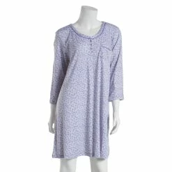 Kick your feet up and lounge in the Womens Karen Neuburger 3/4 sleeve ditsy henley neckline nightshirt. Including an elegant floral pattern with a button design and an exterior pocket.