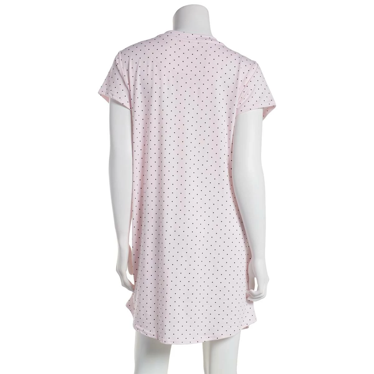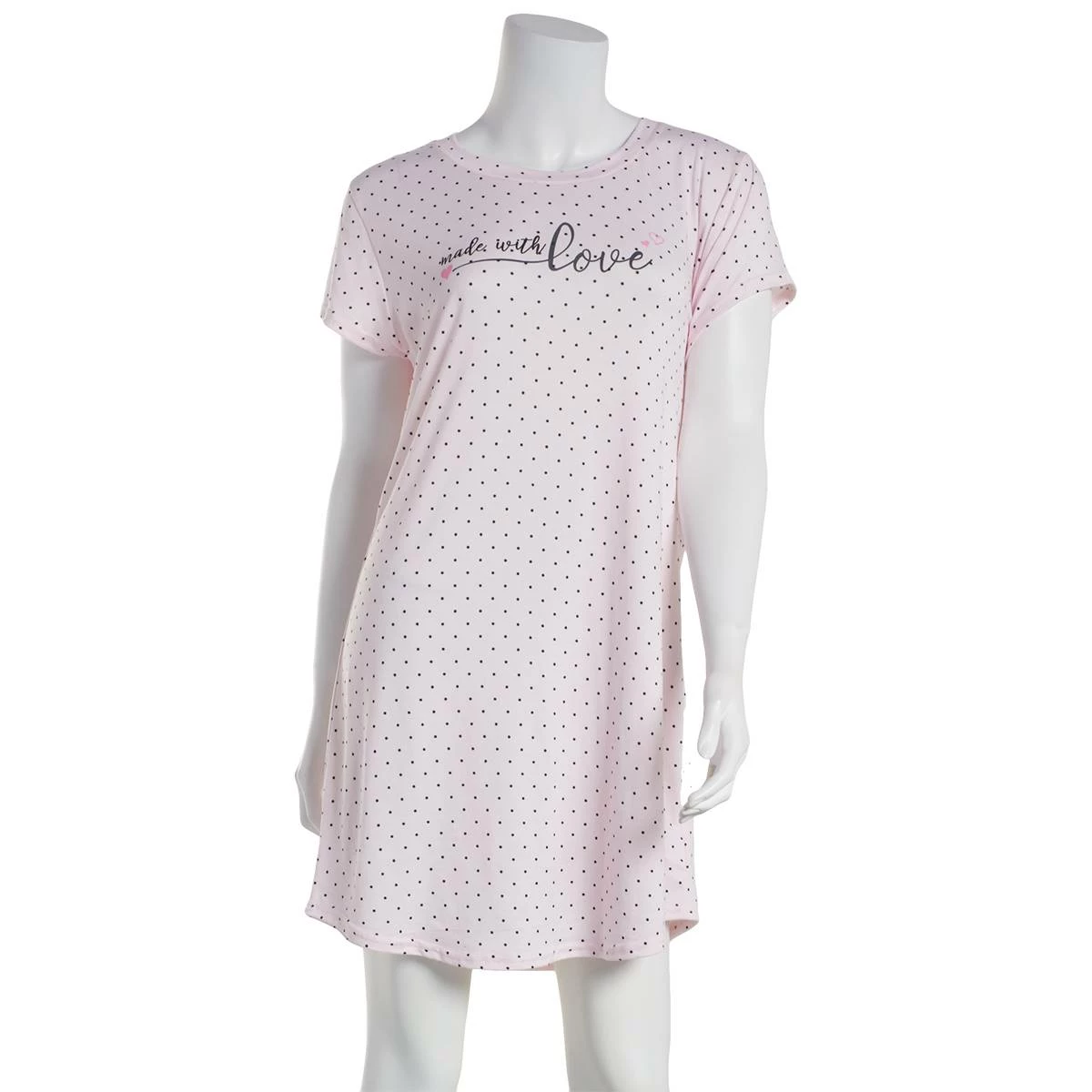 Add the Womens Laura Ashley® short sleeve peached scoop neck nightshirt with flocking to your loungewear collection. Featuring a dotted design with “Made With Love” screen printed on the front.