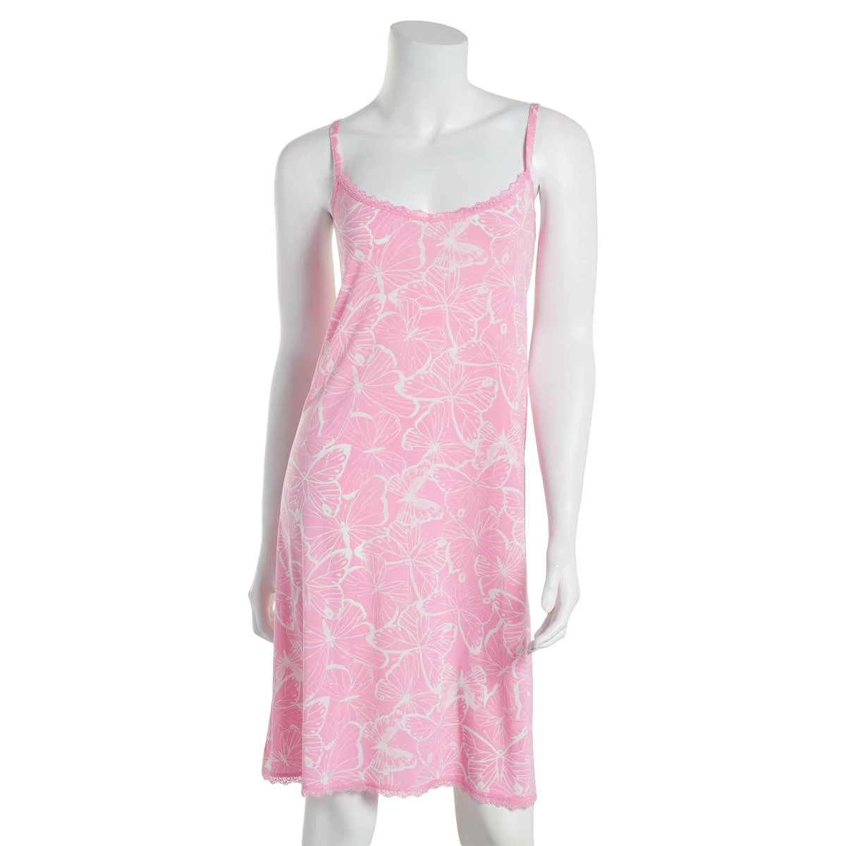 Soft and smooth the Womens Moonflower stretch satin camisole hugs the body in comfort. Providing adjustable straps, a butterfly design, and lace trim.