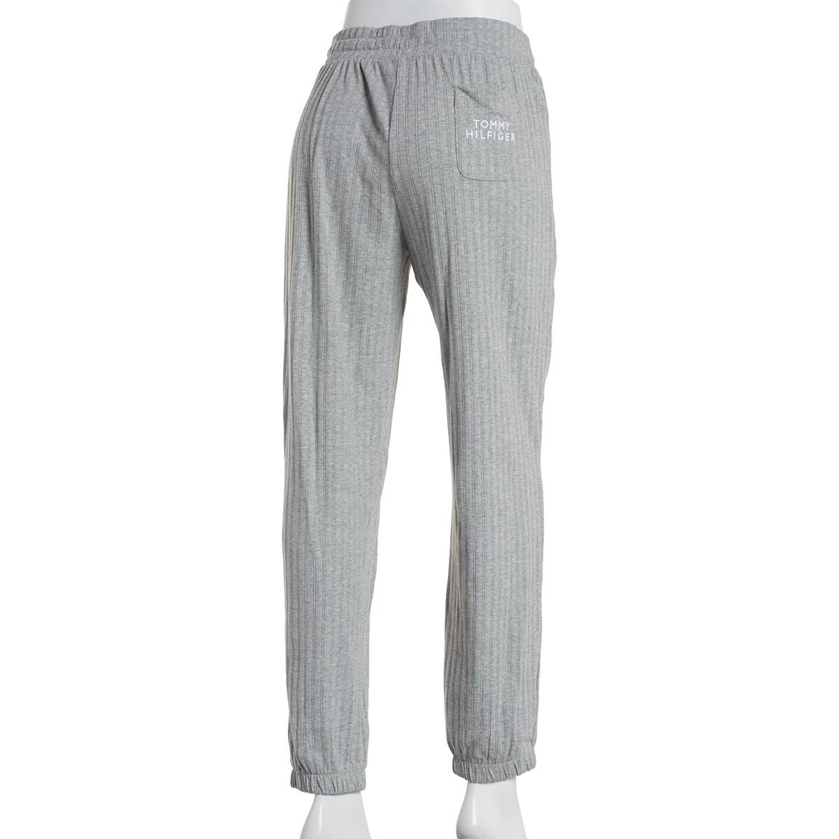 Cozy up in the Womens Tommy Hilfiger logo tie texture rib jogger pajama pants. Match with any of your favorite tops. Providing a self tie waist and signature logo stitched on the back pocket.