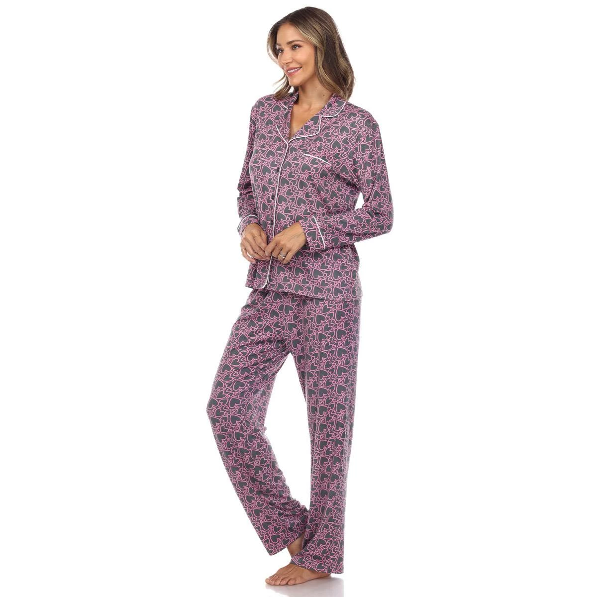 Sweet dreams start with cute pajamas! This Womens White Mark 2-piece Long Sleeve Heart Print Pajama Set is great for comfortably lounging on lazy weekends or getting ready for a night out. Set includes long sleeve top and pants.