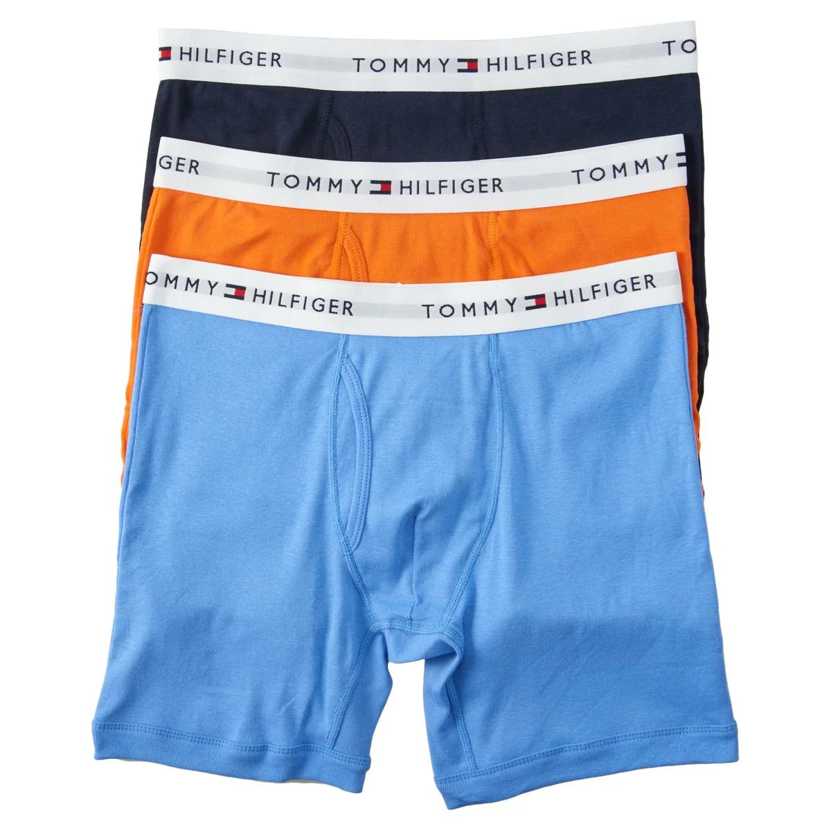 You will love the all day comfort of these Mens Tommy Hilfiger 3-pack Boxer Briefs. They feature a functional fly, a soft cotton fabric, and logo banded elastic waist.