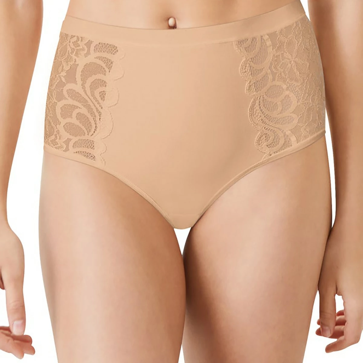 The Womens Bali One Smooth U® tummy smoothing brief flaunts a gorgeous lace side panel detailing. This shapewear features a soft microfiber fabric, a panty line free, and full coverage design.