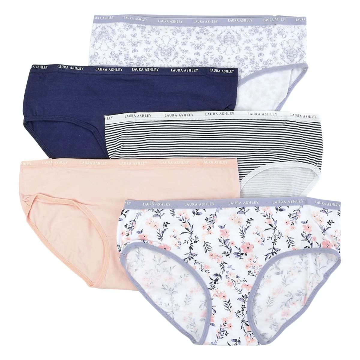 These comfortable Womens Laura Ashley® 5-pack bikini panties will layer great with their smooth finish. Featuring a variety of colors and patterns to choose from.