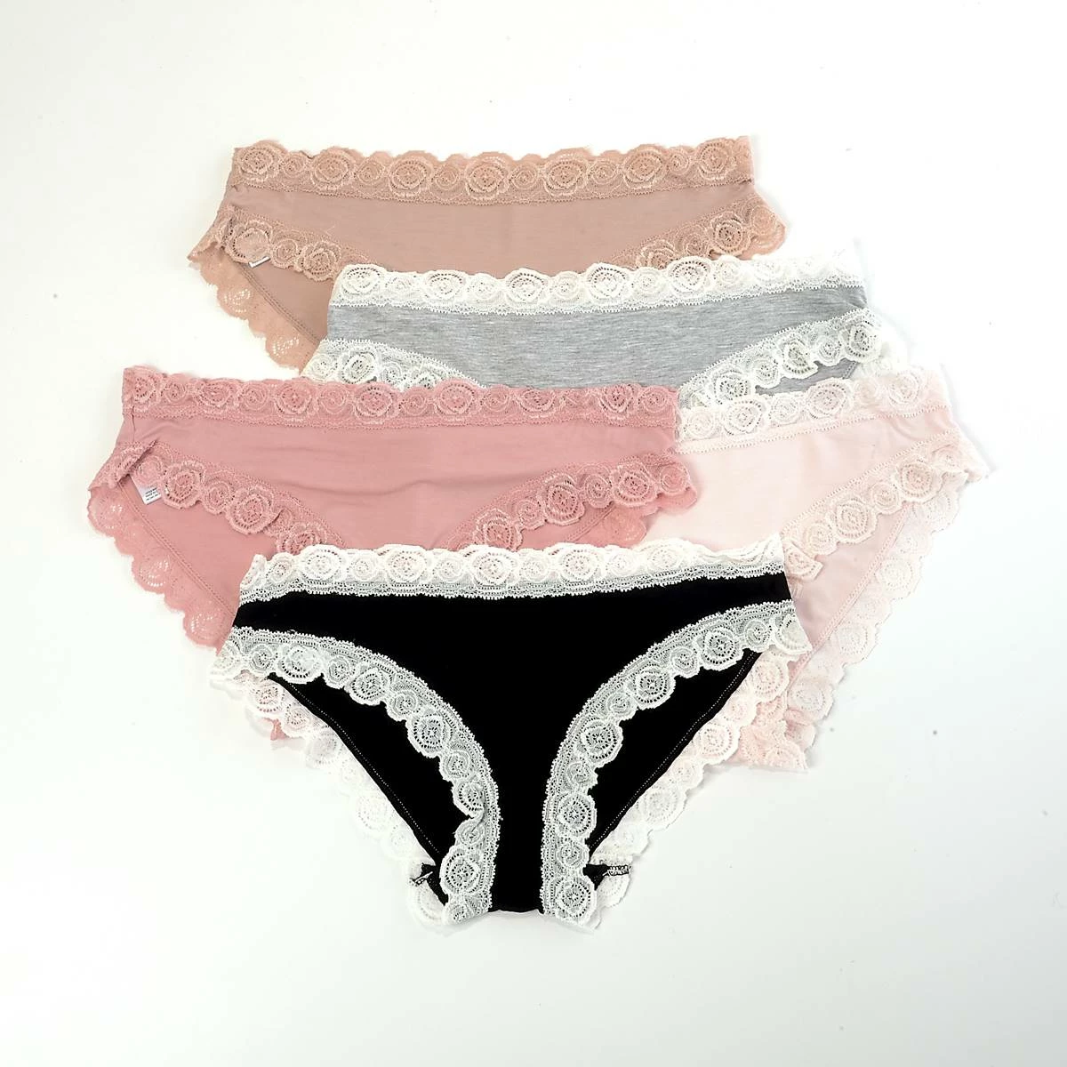 Feel pretty in the Womens Laura Ashley® 5-pack bikini panties. Providing a soft material for all day comfort and lace detailing.